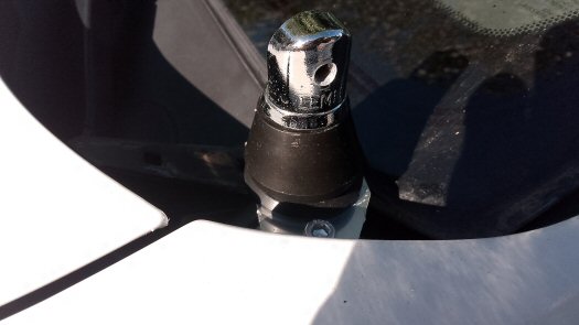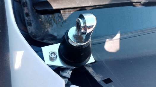 Fixation antenne sur la vis de serrage de l'aile après le dépôt du cache en caoutchouc |